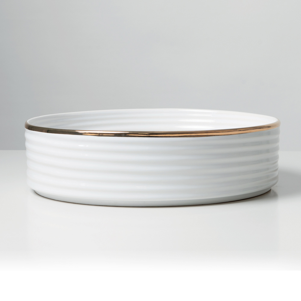 • Glossy white inside and out with gold edge