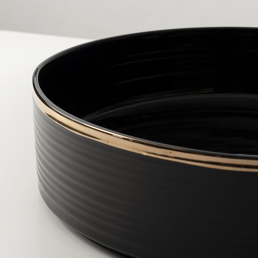 Countertop sink in porcelain stoneware with metallic finish edge