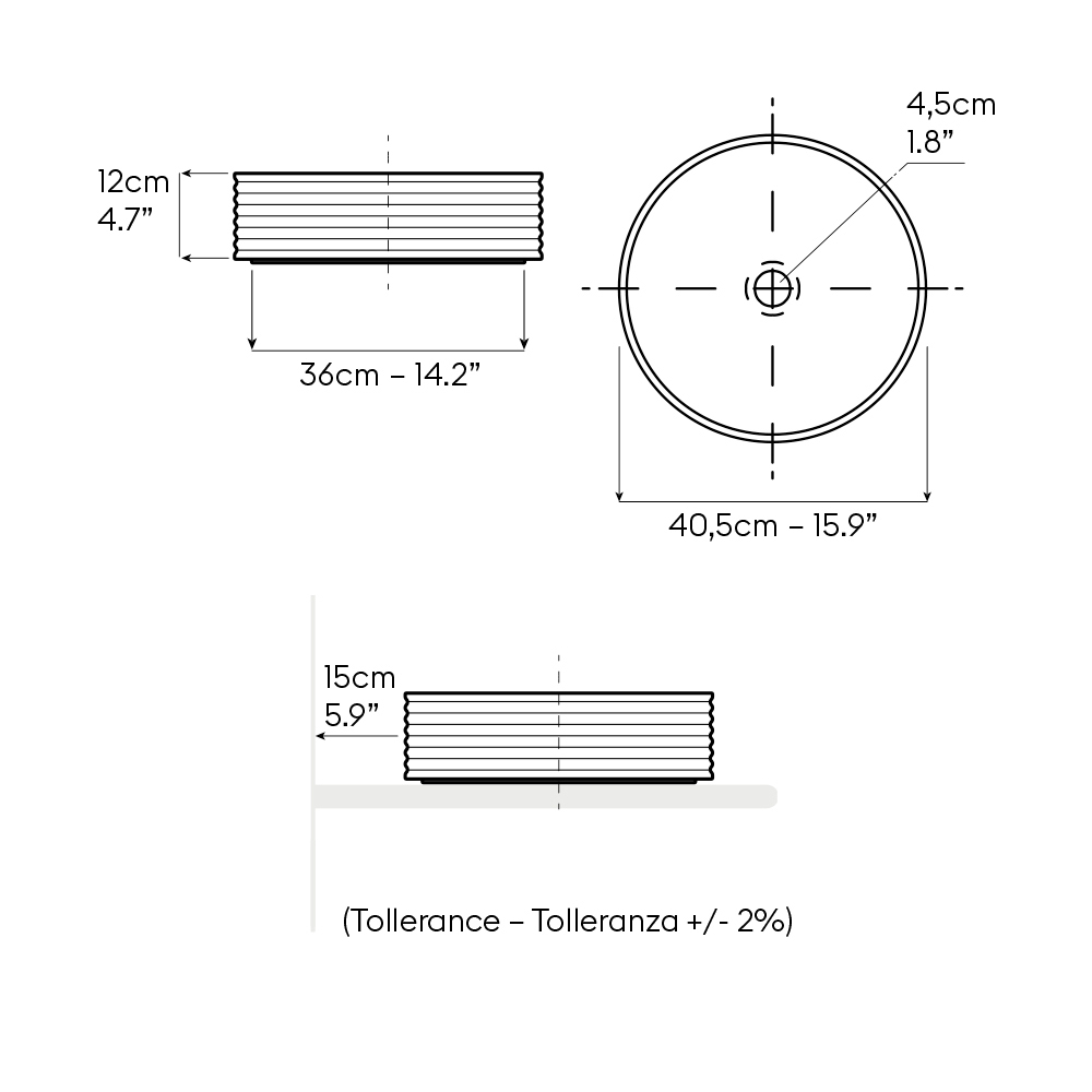 • Diameter: 40.5 cm