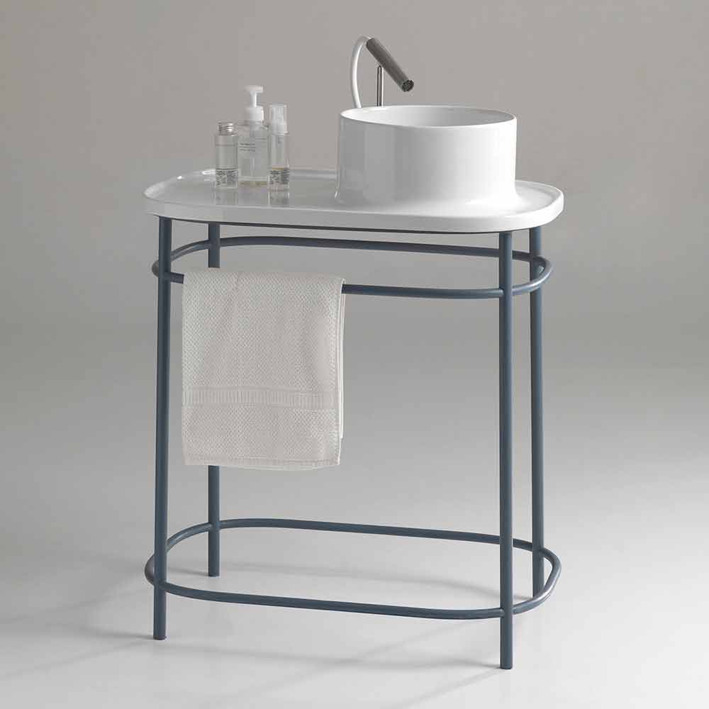 Ceramic washbasin with a vintage look and a practical design, with white ceramic drain cover included, complete with metal base.