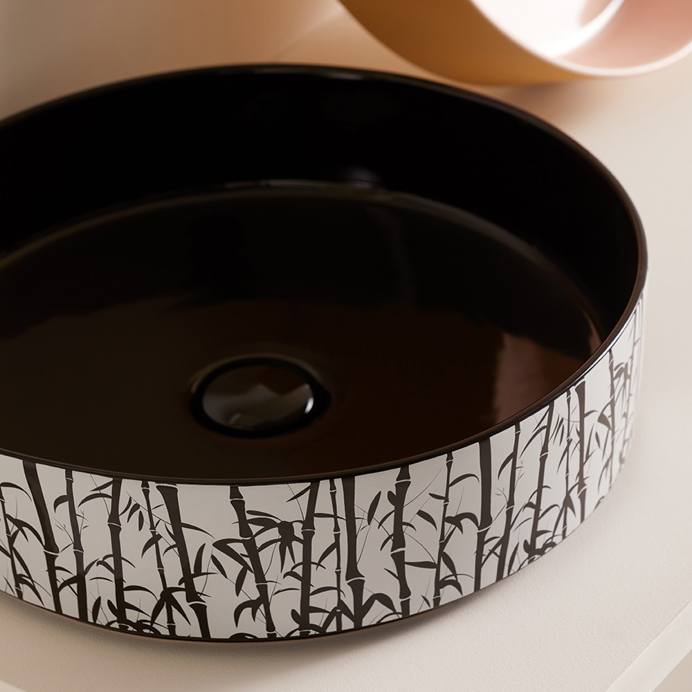 This sink draws inspiration from the colors of sweets, playing with the simplicity of the shape and the originality of the combinations , in plain colors or decorated with small abstract or figurative geometries. This creates a kaleidoscopic play between inside and outside which transforms it into the perfect piece of furniture to complete the furnishings of the bathroom with a lively and innovative touch.