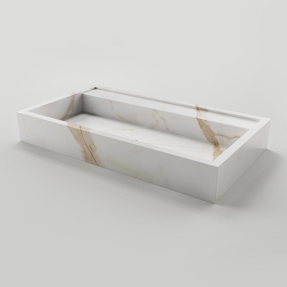 Countertop washbasin in marble-effect porcelain stoneware Made in Italy.