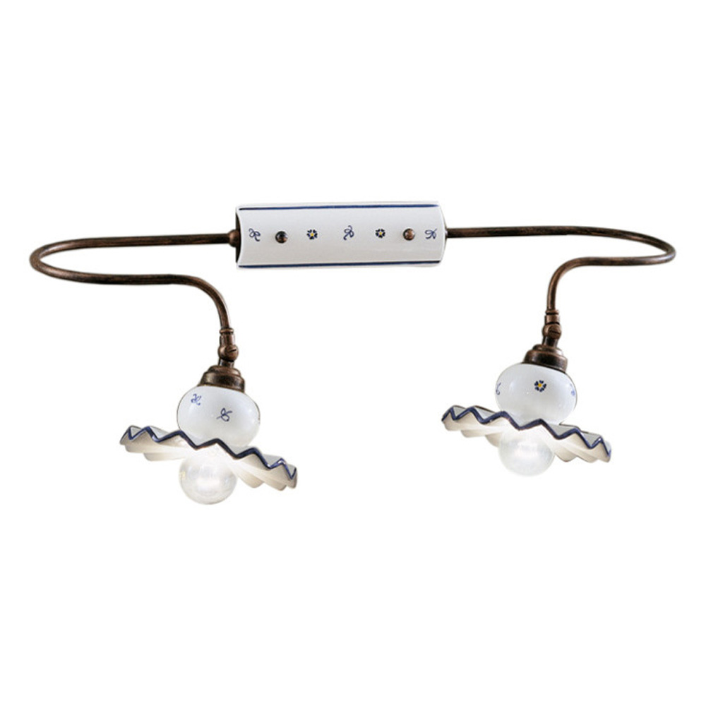 Handcrafted hand-painted metal and ceramic wall lamp made in Italy by Ferroluce.