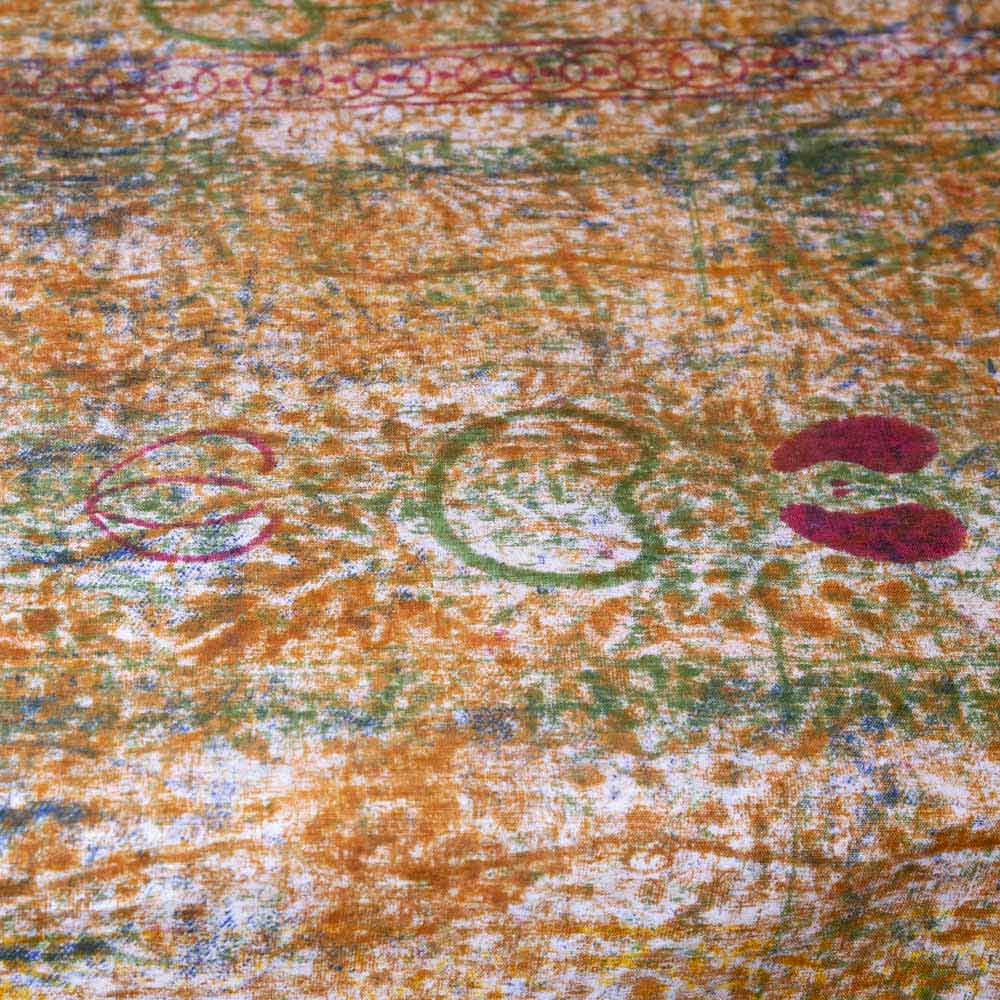 During the printing phases, the color is partially transferred also to this underlying fabric which, month after month, turns into an "involuntary" work of art but full of color and charm.