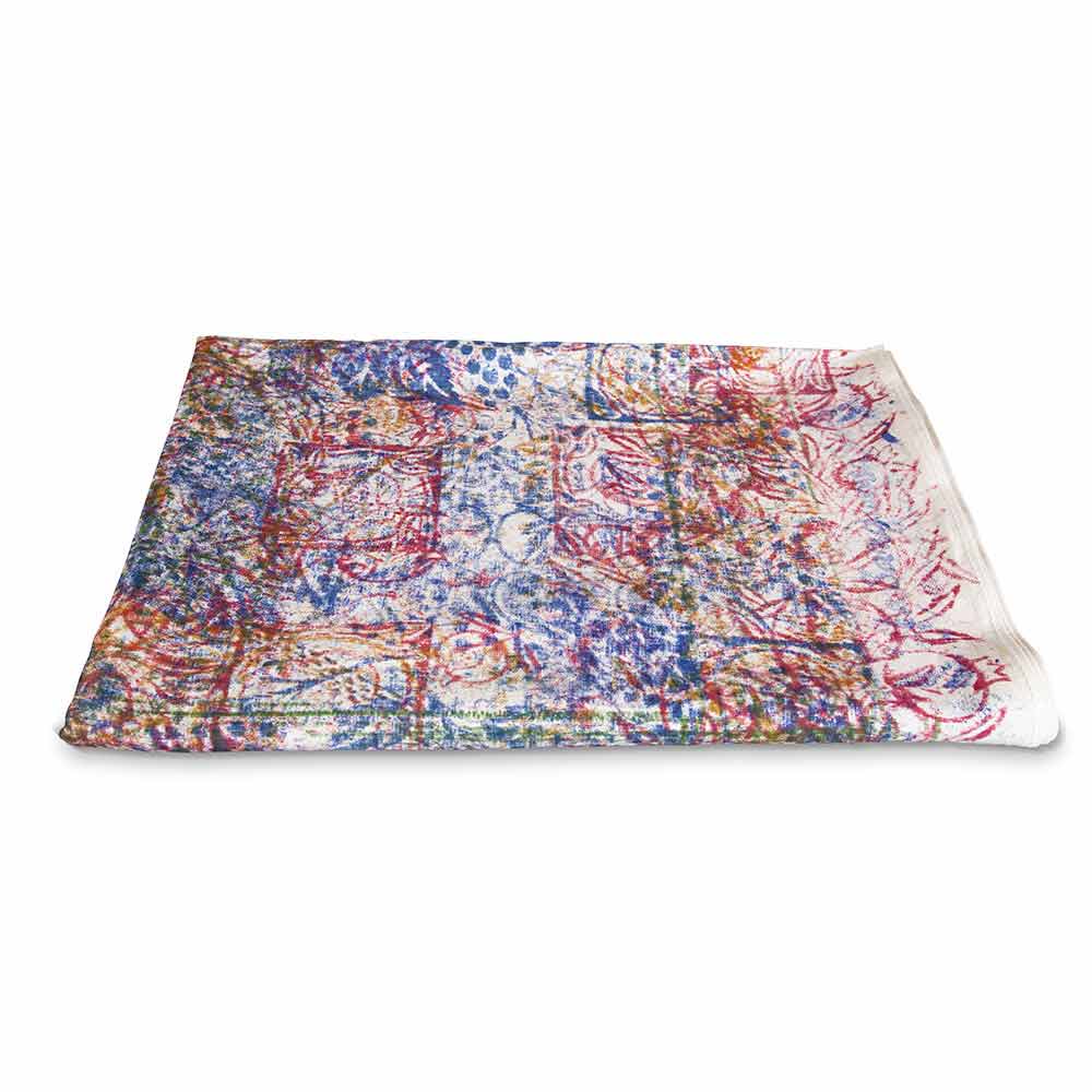 Multipurpose tablecloth (bedspread, sofa cover, table cover) rectangular cotton single piece of great size with colored hand-printed motifs, made in Italy.