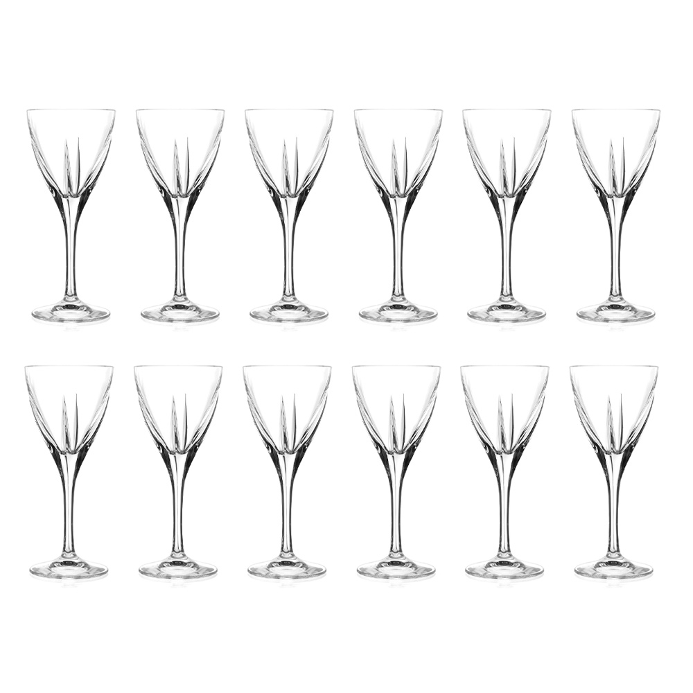 Set of wine glasses in transparent or colored eco crystal 12 pieces 2 sizes made in Italy.