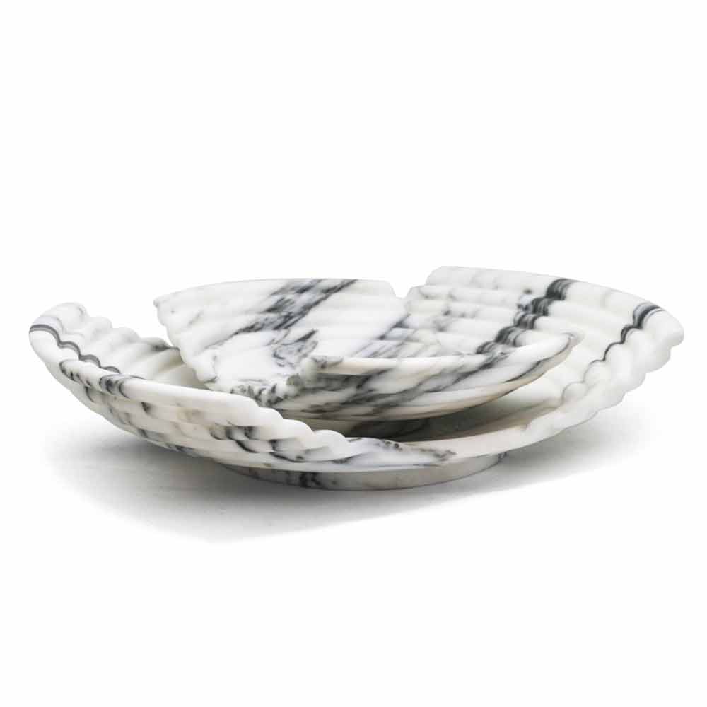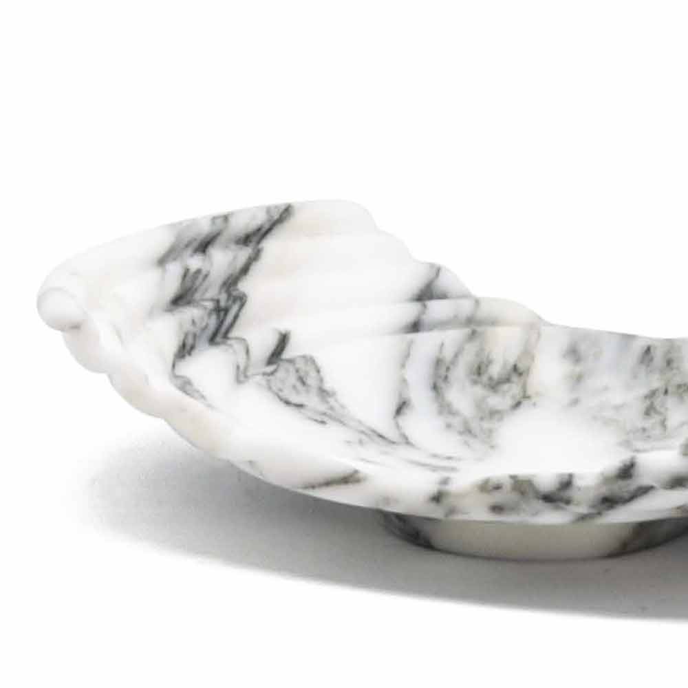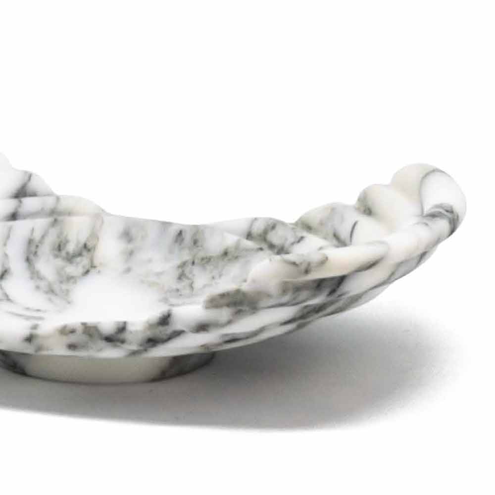 Decorative tray made entirely of arabesque marble, a variety of fine white marble with dark gray veins, called "arabesques".