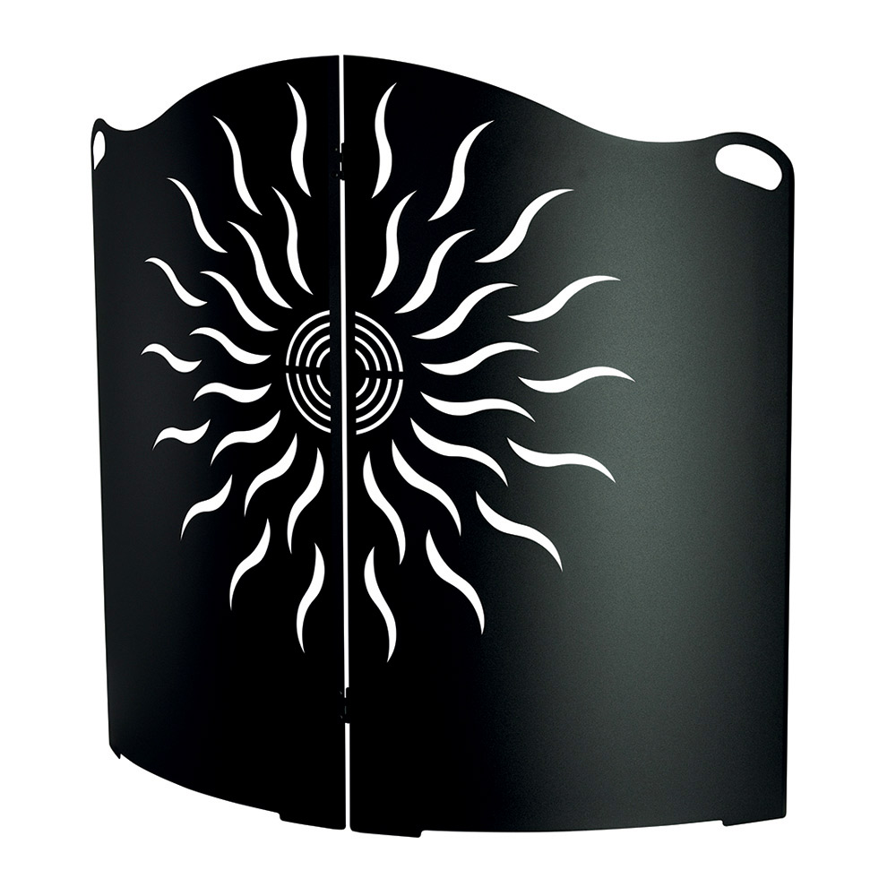 This elegant metal stove guard is a true masterpiece of design and functionality . With its carved solar pattern that evokes warmth and movement, it is an element that not only protects from the direct heat of the stove but also becomes a focal point of the decor. Its black finish makes it versatile and suitable for any environment, from the most modern to the classic, adding a touch of sophisticated elegance. Made of metal, it ensures durability and resistance over time , offering a perfect balance between beauty and safety. A must for those looking to elevate the style of their space without compromising on functionality.