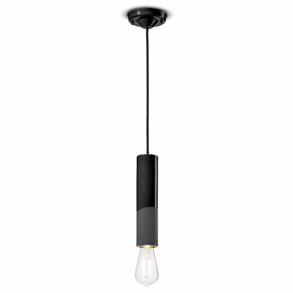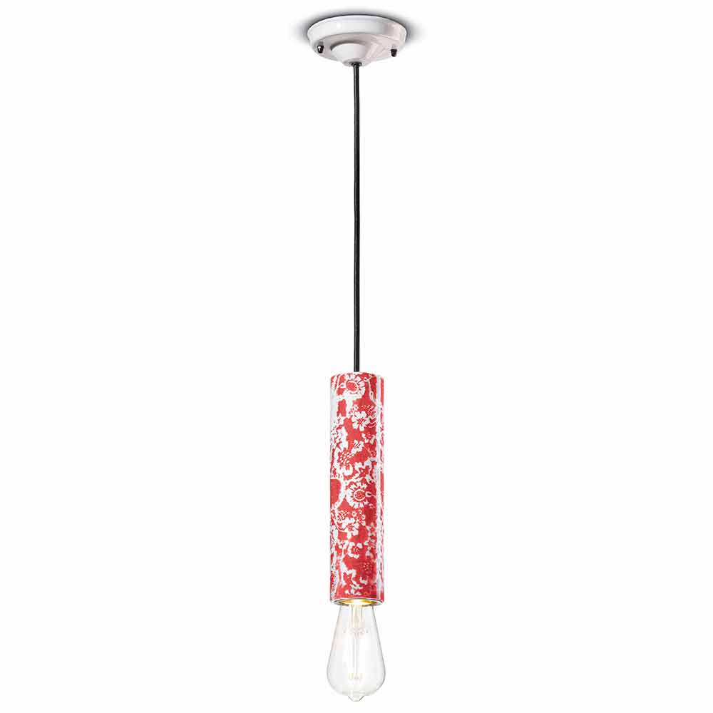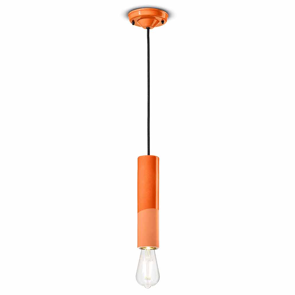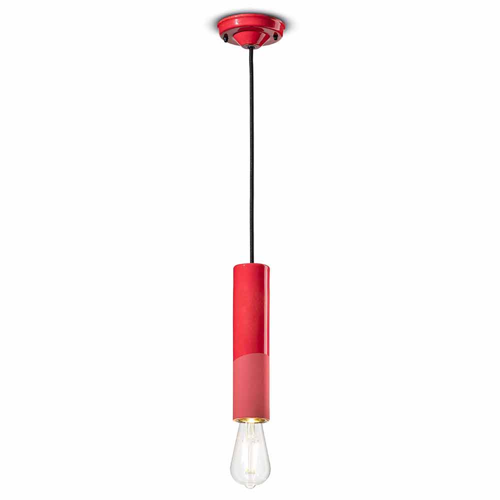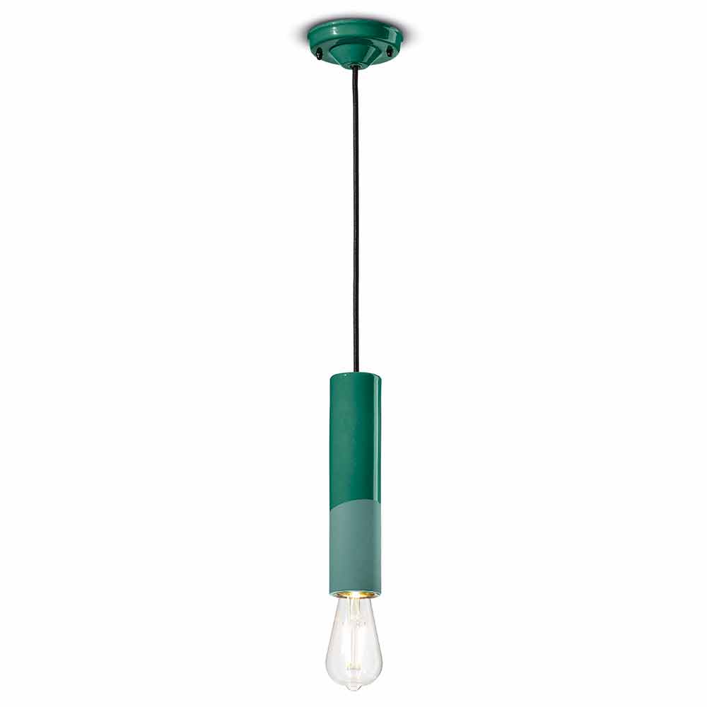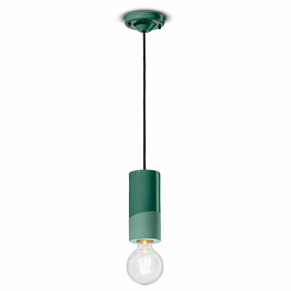 Cylindrical suspension lamp with a retro style in colored ceramic, handcrafted in Italy.