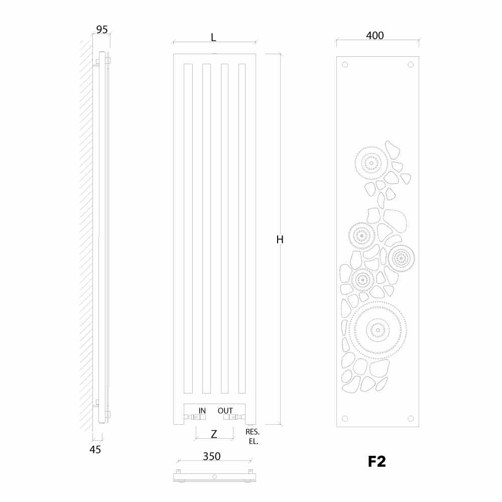 Radiator with chrome steel heating body and edged and painted steel sheet cover, vertical, in the hydraulic version. Mix of materials between heating structure and covering slabs in a perfect balance between aesthetics, functionality, care and refinement of detail. With News Dress you dress the environment you live in. Choose the color that best suits you!