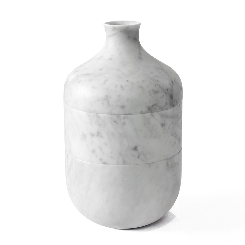 Decorative vase in white Carrara marble design in 3 parts made in Italy.