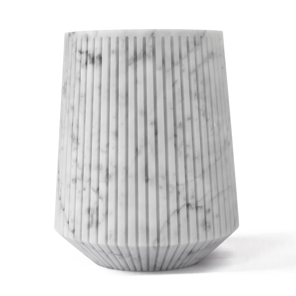 Large handcrafted vase in white or black marble with stripes of made in Italy design.