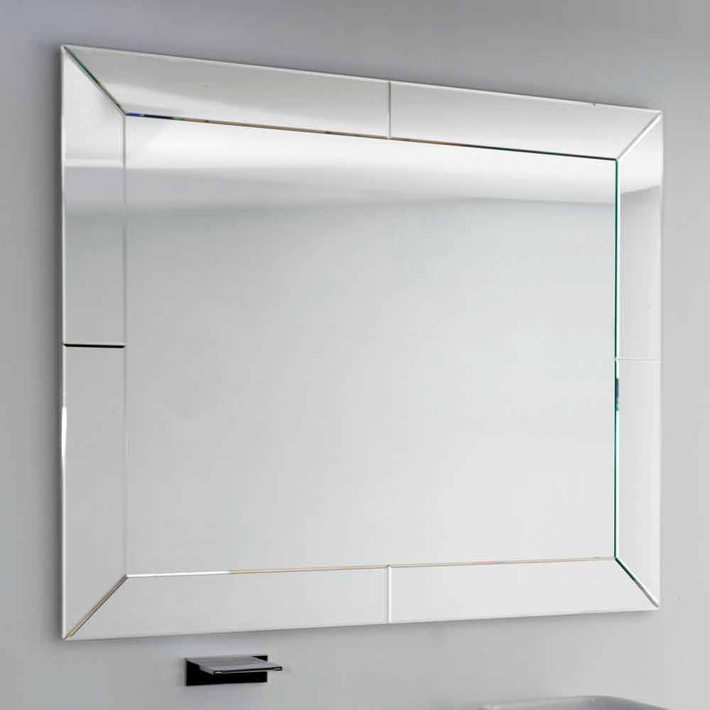 Dedalo modern bathroom mirror with cut glass frame, H120xL120 cm.
