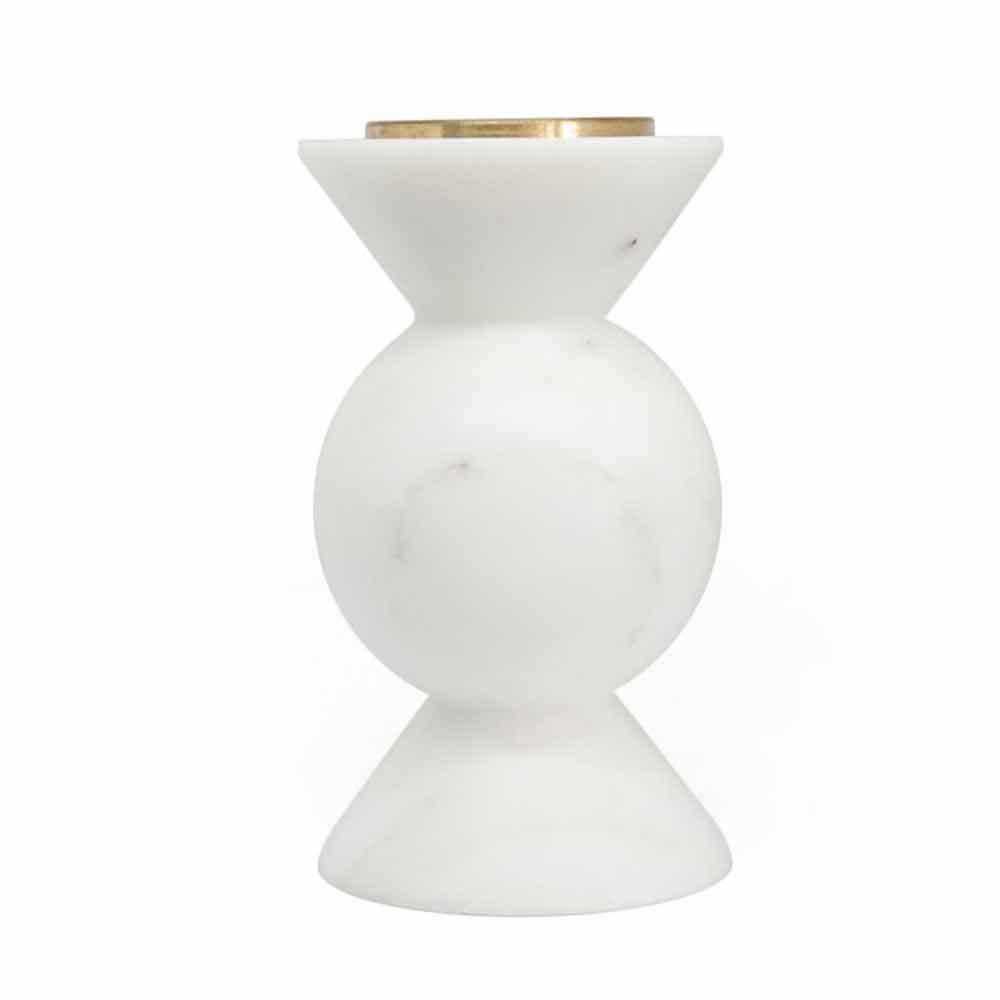 Low candle holder made with high quality white Carrara marble and brass . It is to be considered a unique piece as each block of marble used differs from the others for veins and shades. The marble comes from the Poggio Silvestre quarry, a source of first quality white marble classified since the last century.