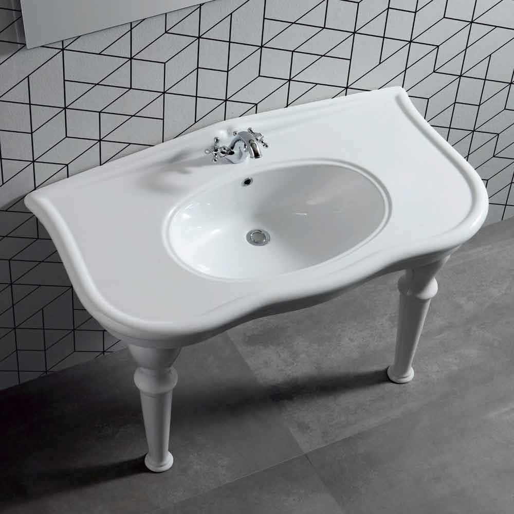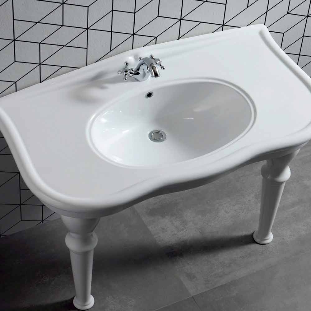The sink Avise is equipped with a central hole and it is available in the wall-mounted version or the one with legs. It is realized in vitreous china, a kind of glazed ceramic cooked at 1200°. It is a material resistant to acid, heat, bumps and scratches. It is hygenic, easy to clean and it does not fade over time.