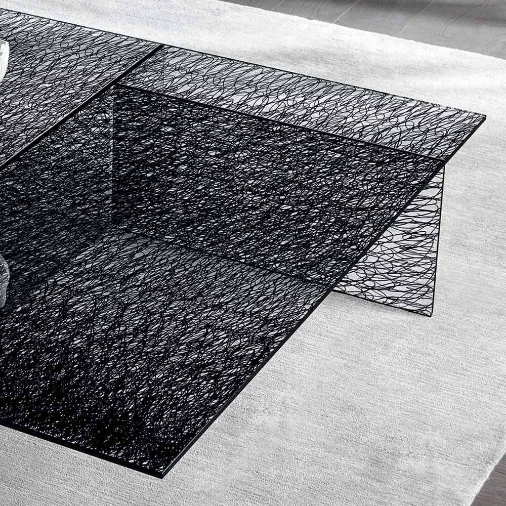Modern design coffee table in decorated extra-clear glass, handcrafted in Italy.
