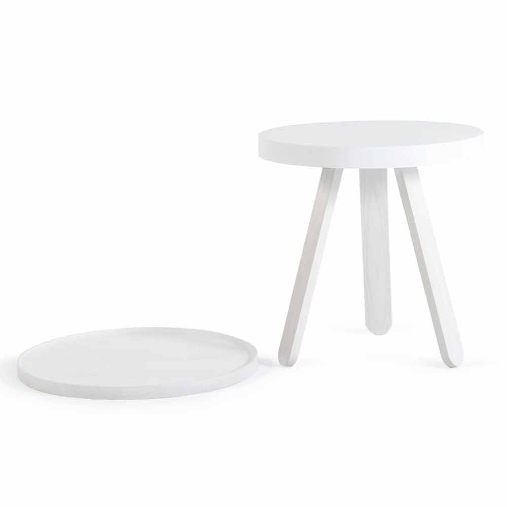 Its structure is made of solid ash wood and matt lacquered steel , materials that contribute to giving stability and sturdiness and the element that distinguishes it is undoubtedly the easily liftable round top allowing you to reach the practical container compartment ideal for organizing objects such magazines, books and remote controls to always have them at hand.