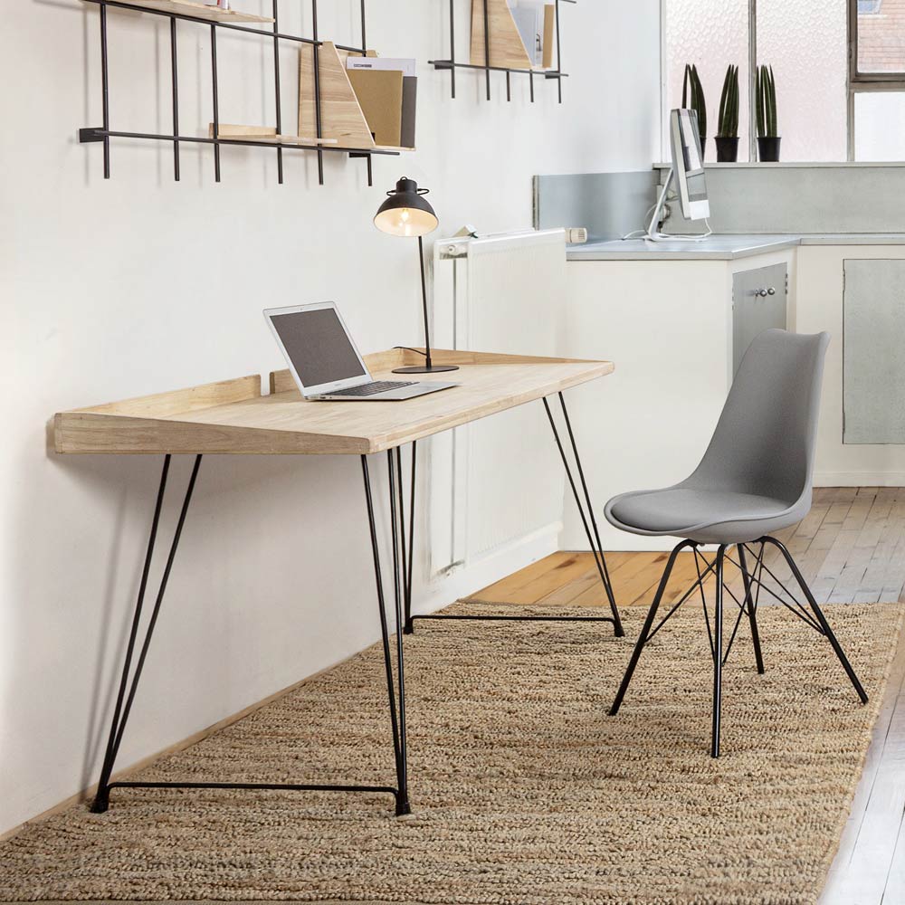 Design Desk in Steel and Industrial Style Wood Top - Secretary