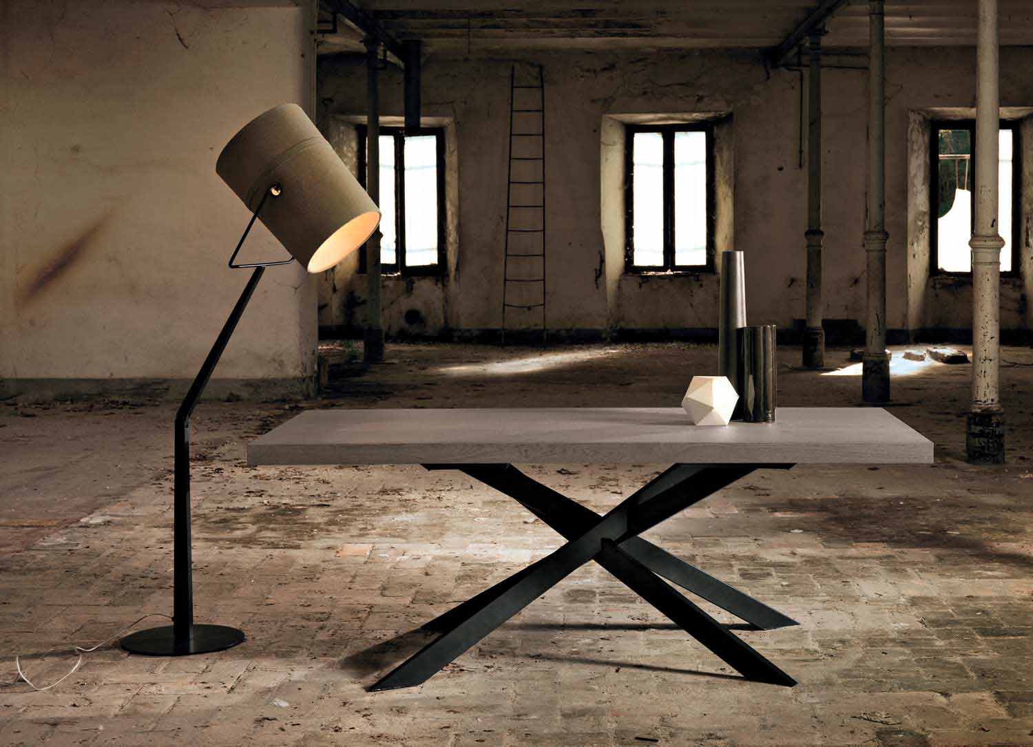 structure is in micro-embossed anthracite finish metal with crossed tubes and adjustable feet.