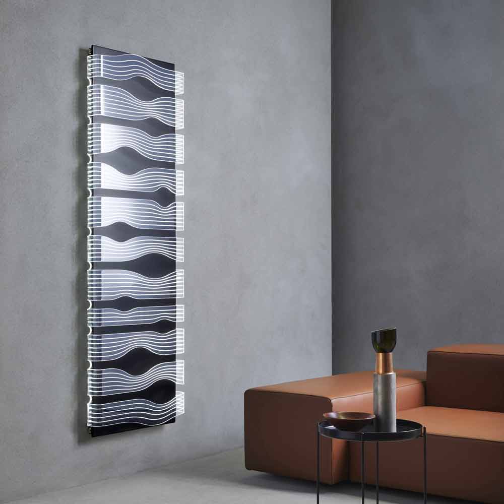 It is a radiator in carbon steel and methacrylate with LED light suitable for contemporary environments, made entirely in Italy , the value of the radiator is determined by values such as total quality, service of the highest level, the search for an always innovative but functional design and respect for the environment not only in developing products with low environmental impact but also in the production phase.