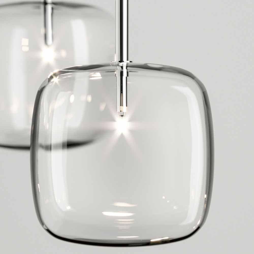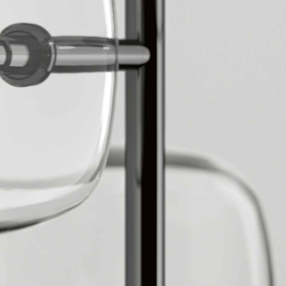 The floor lamp is a fundamental element in any home as it performs two functions: to create a light point while decorating the environment. This floor lamp is made in Italy and represents an extremely elegant and high-impact lighting idea that helps to create an environment with a refined and modern atmosphere. Its shiny metal structure includes cube-shaped decorations with rounded corners in transparent blown pyrex glass with G4 3000K LED light and dimmersable bulb.
