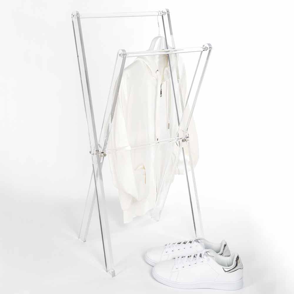 Floor towel holder in transparent plexiglass or with modern design wood made in Italy.
