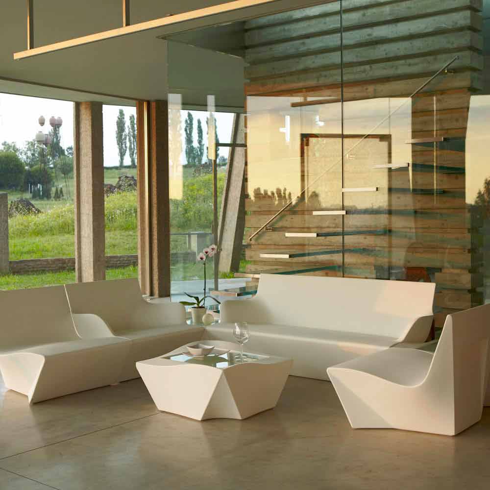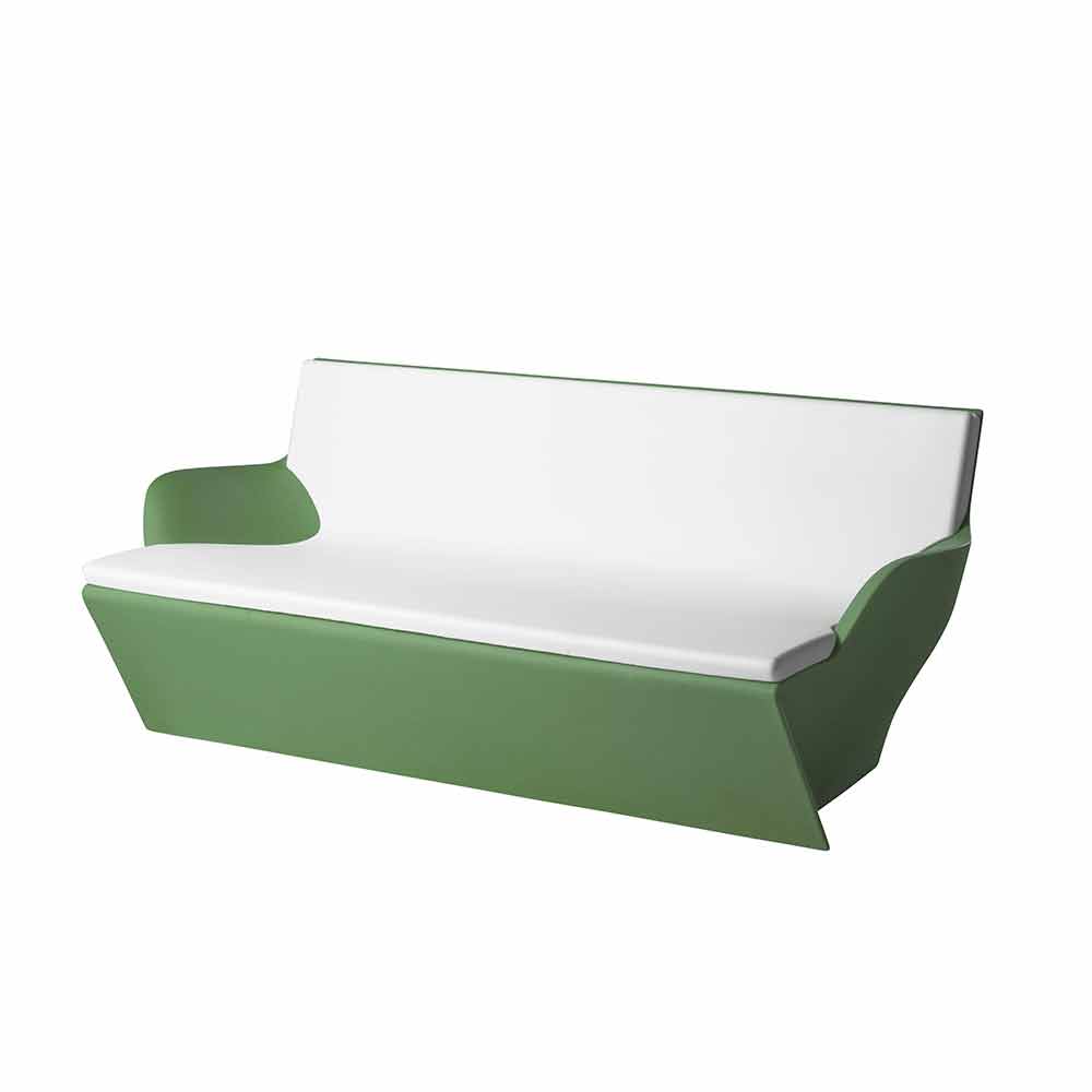 Kami Yon is a two-seater sofa with armrests with an abstract but essential design that recalls the traditional origami of Japanese art, thus presenting lines that refer to folds but giving shape to a piece of furniture with soft, original and elegant lines. Perfect for modern and contemporary furnishings both indoors and outdoors.