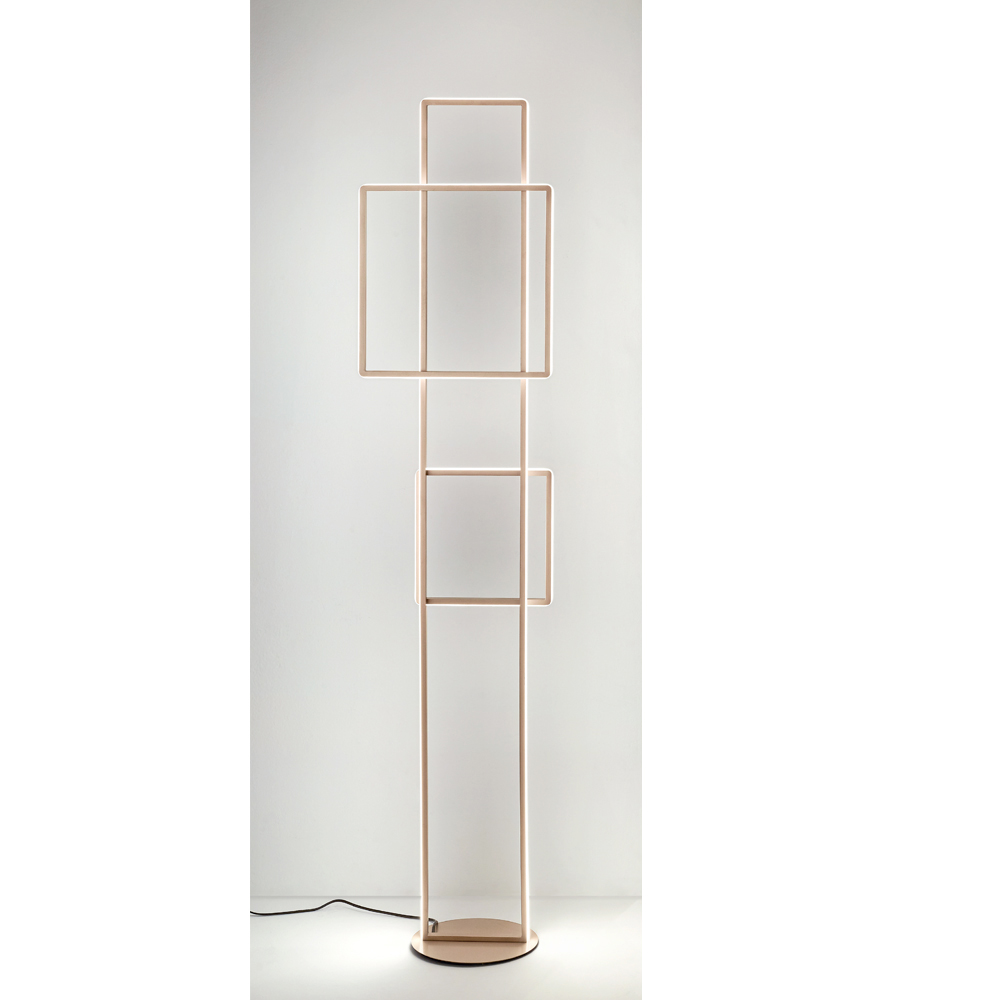 LED floor lamp in painted metal, gold or silver finish, modern design.