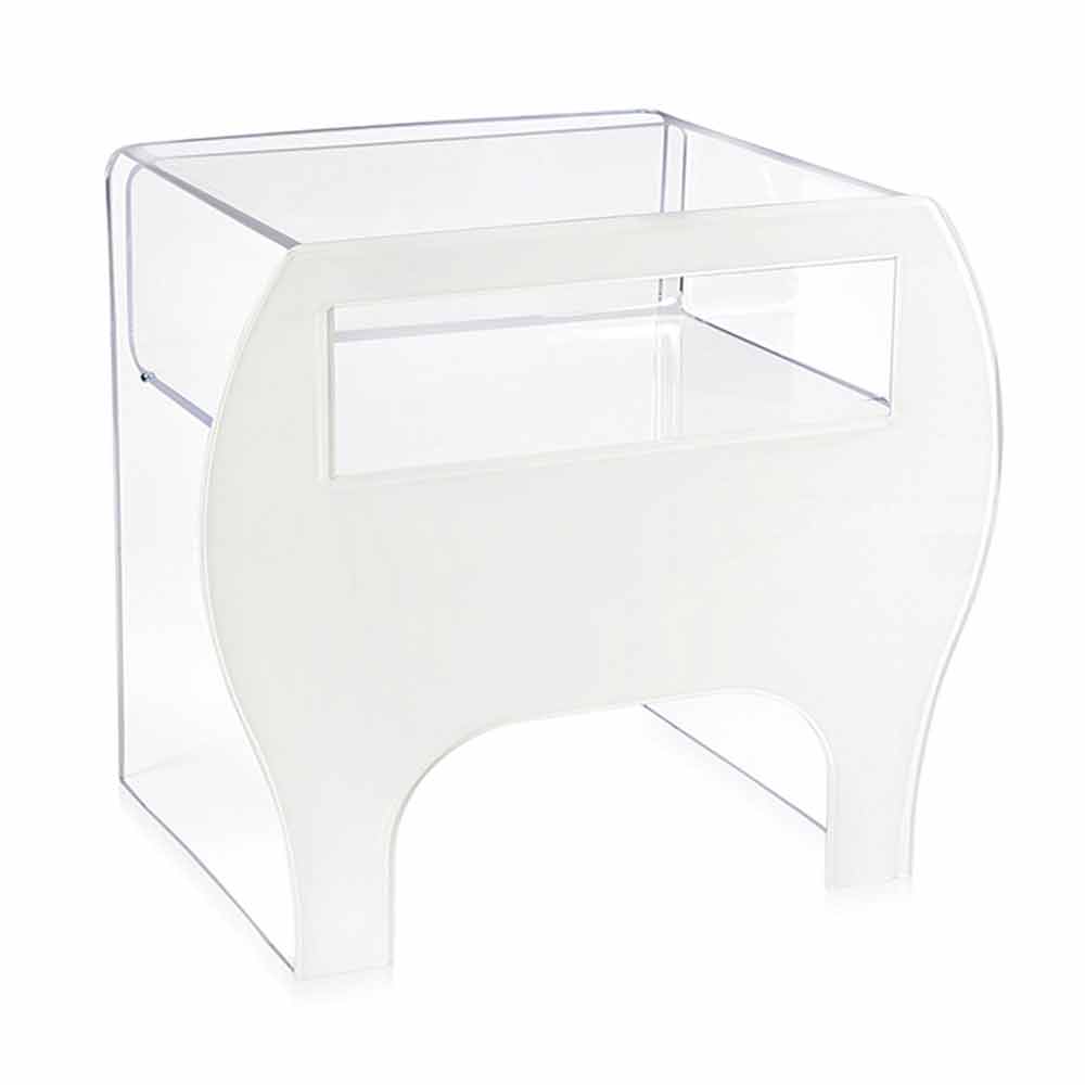 Mineo is composed by lines and curves typical of the french Art Nouveau that conjugate themselves with the most modern of the excellence materials: the acrylic crystal. It is the bedside/ small table in PMMA 100% from virgin polymer, laser-cut and assembled with no metal elements. Its brightness and brilliance are preserved unvaried and unaltered over time. The utilized PMMA plexiglass from virgin polymer is nontoxic, hypoallergenic, odourless and antibacterial. 100% recyclable. Thought, designed and made in Italy with italian materials.