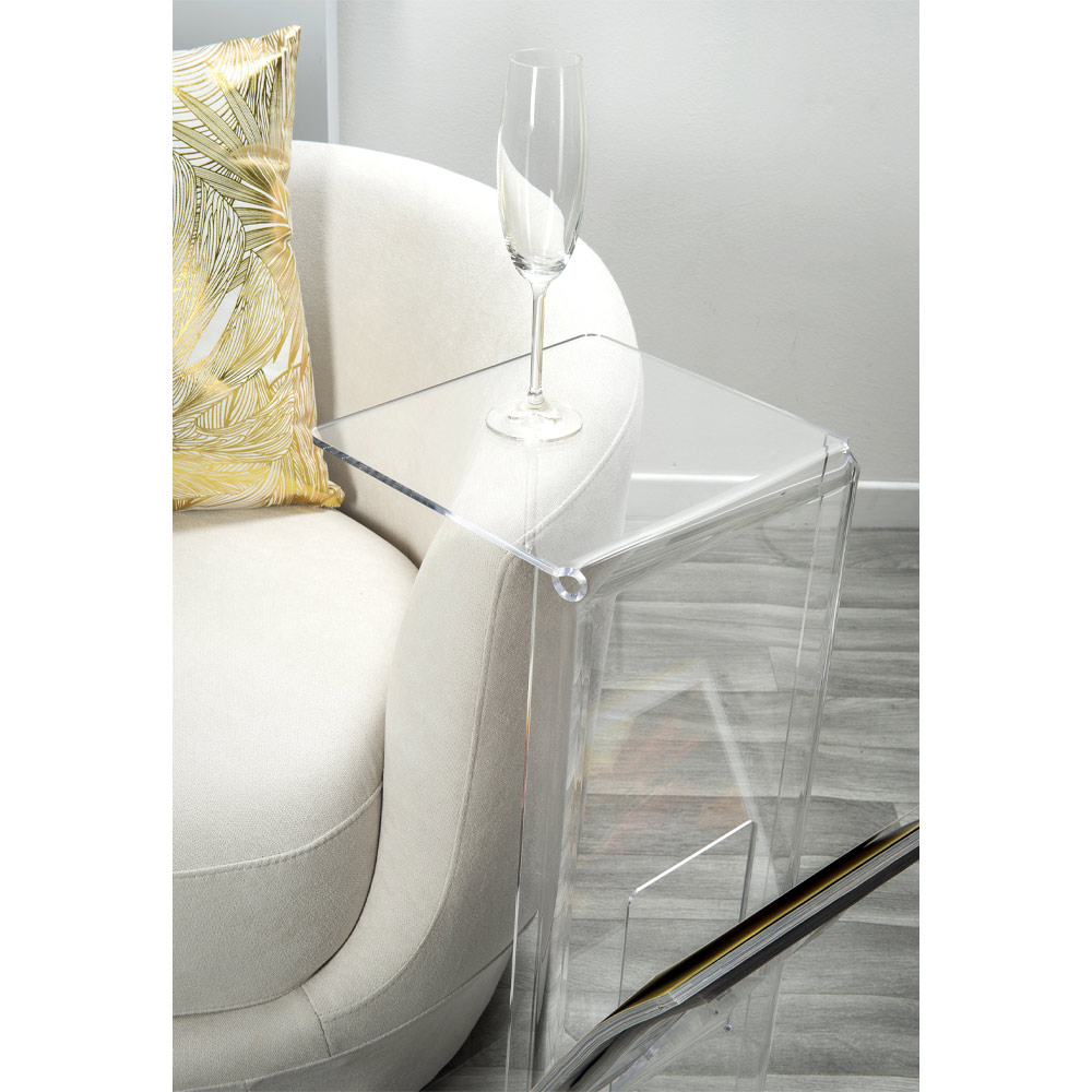 The QUERO VAS small table is characterized by a modern and elegant design, perfect to fit in your living room. It is made with PMMA from virgin polymers. The physical features of the plexiglass (thermal- insulating, shock-proof, non deformable, unalterable) make the table suitable both to indoor and outdoor spaces. Its brightness remains unaltered and unvaried over time. The utilized PMMA plexiglass from virgin polymers is nontoxic, Hypoallergenic, odourless and antibacterial. 100% recyclable.
