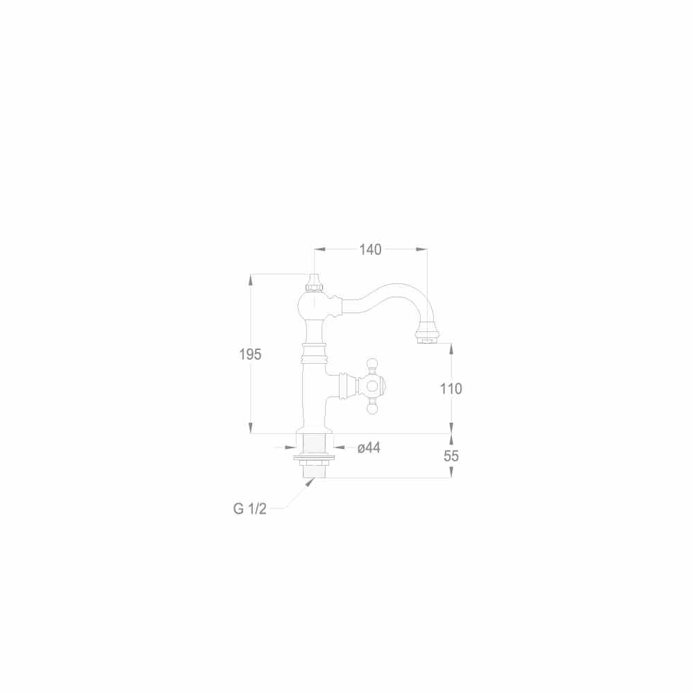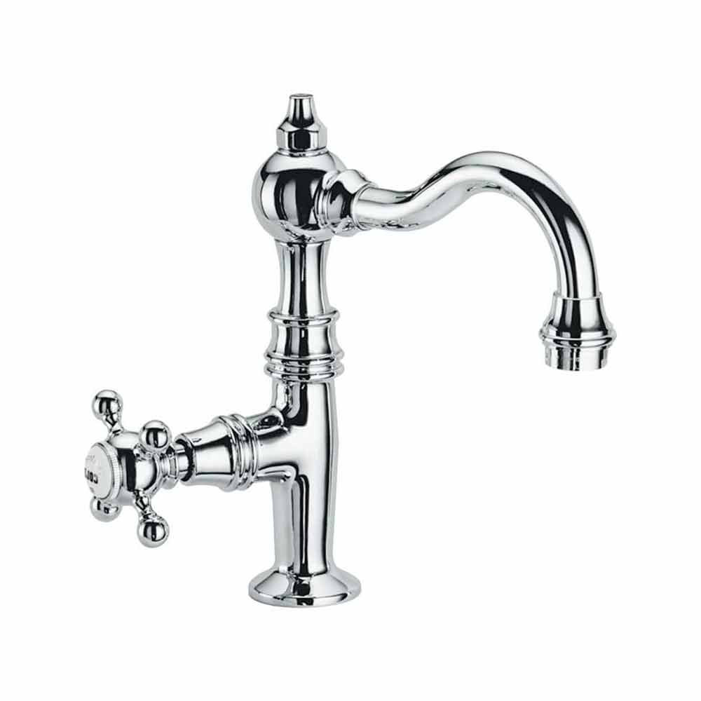 Single-water countertop basin tap in brass with chrome finish. Entirely produced in Italy with high quality materials conforming to European standards. This mixer can be installed on the top, equipped with an aerator and 180 ° ceramic head; recommended for its Energy Saving system for water saving of 6L / min and its swivel spout.