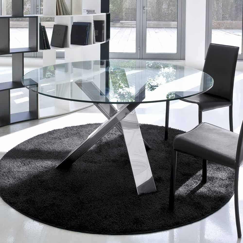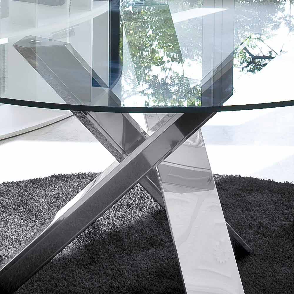 Design round table (d.120) with crystal top made in Italy, Cristal