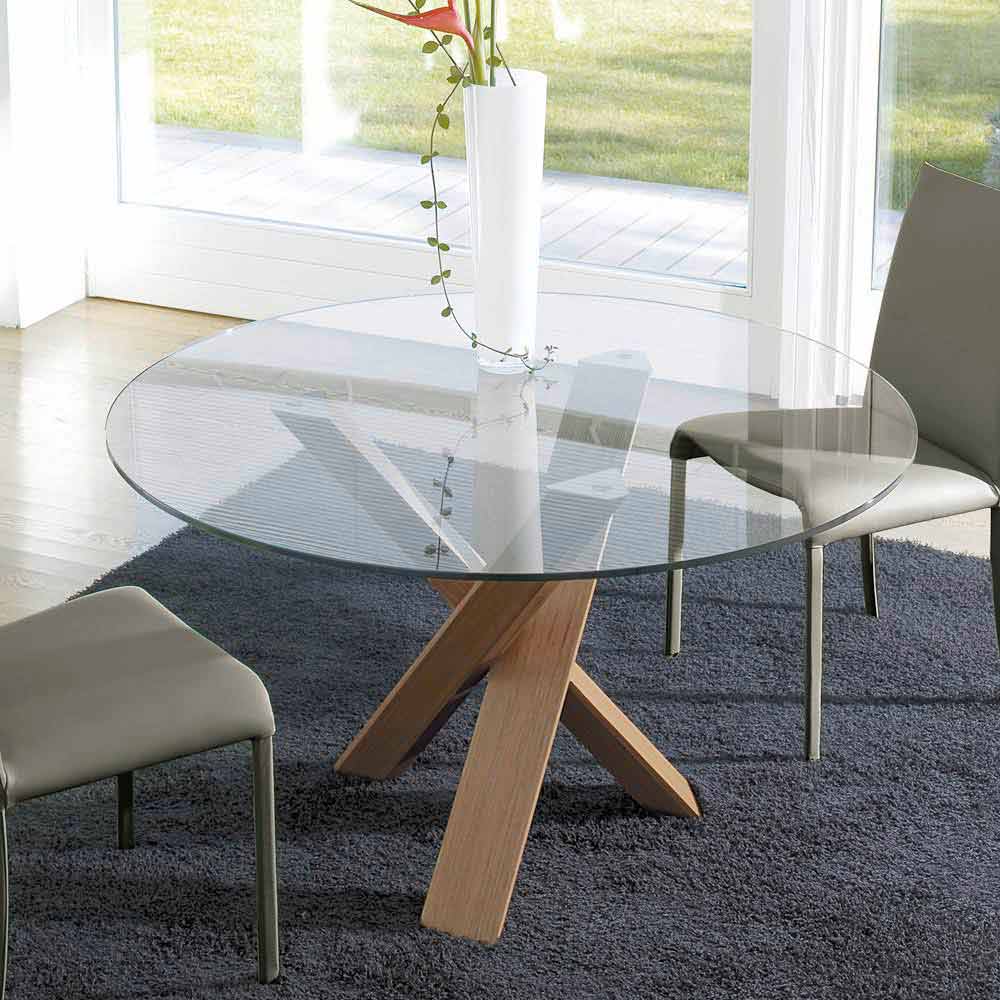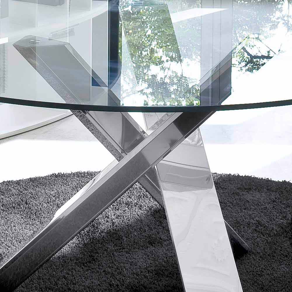 Design round table (d.160) with crystal top made in Italy, Cristal