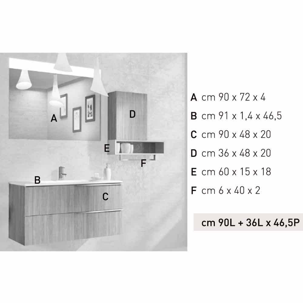 - a sink base in sawn oak ecowood with handle in the brill chromed finish; L90xH48xP46 cm;
