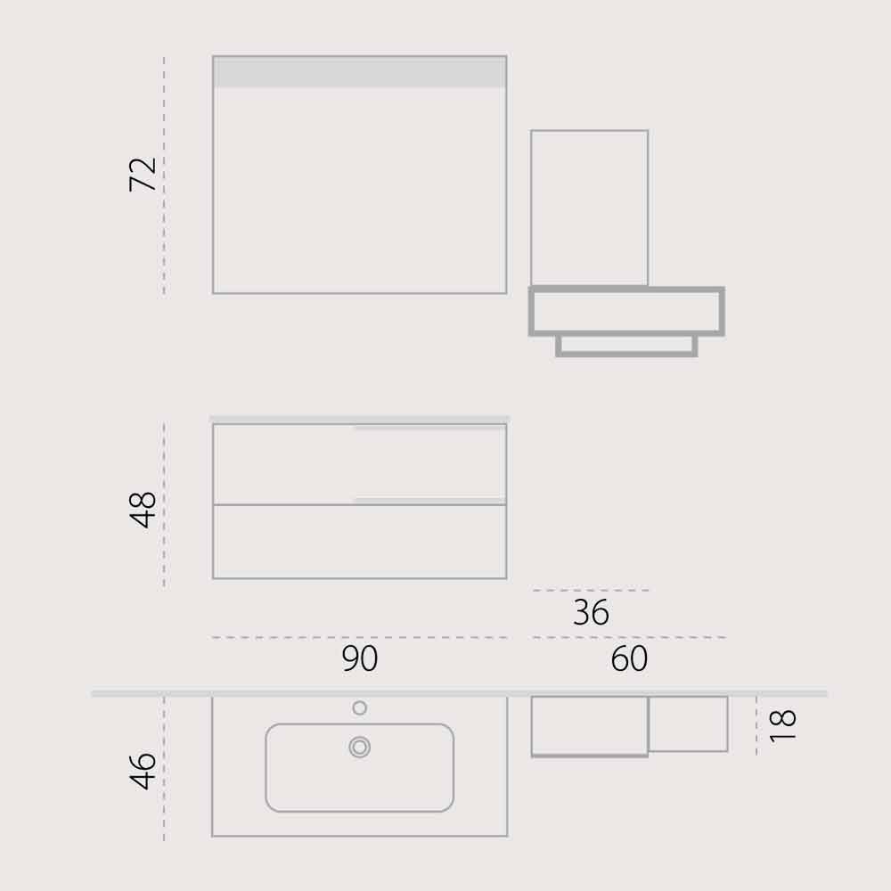 - a sink surface in white ceramic; L91xH1,4xP46,5 cm;