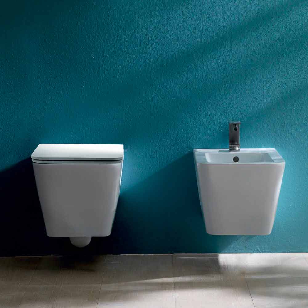 Design ceramic wall hung bidet Sun Square 55x35cm, made in Italy
