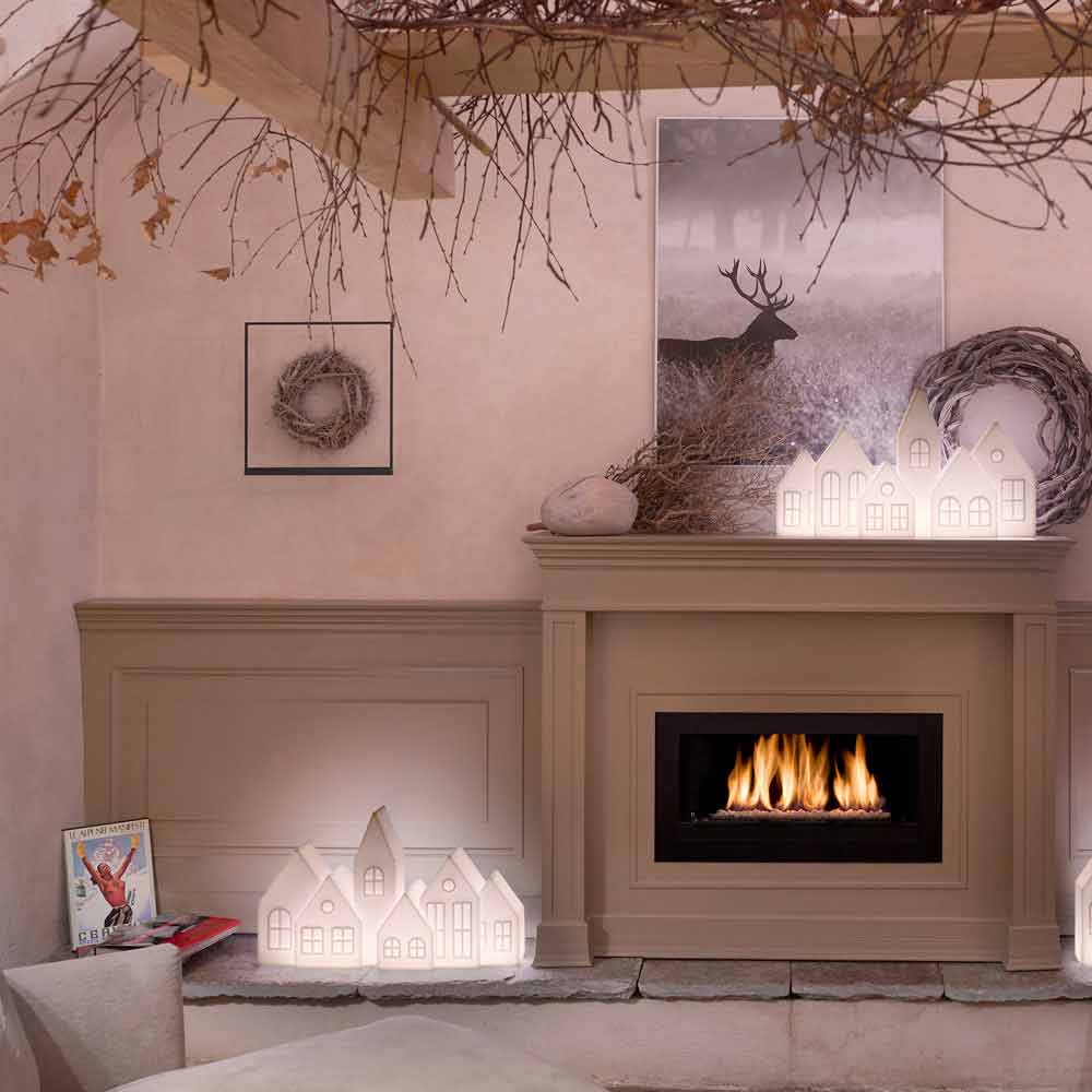 table lamp helps to create the Christmas spirit thanks to its design in the shape of a crib with a strong contemporary soul made up of six houses, which recalls the classic style of traditional Scandinavian landscapes.