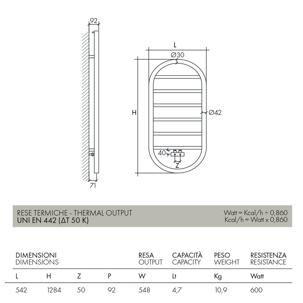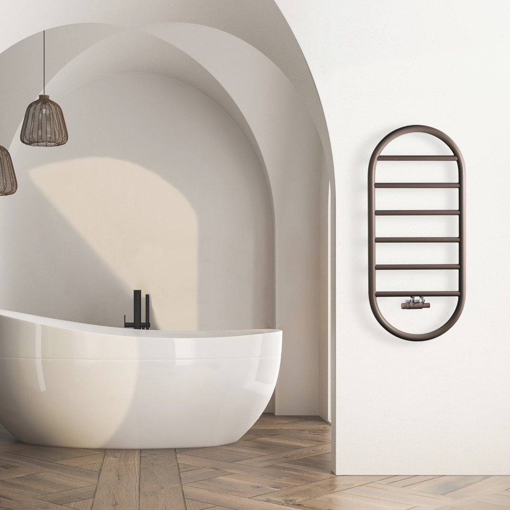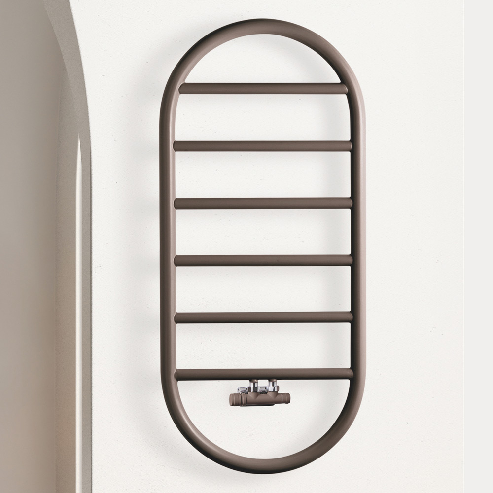 This sophisticated steel radiator features a distinctive oval design, complemented by horizontal bars that enhance its elegance and make it a stylish focal point in any environment in which it is placed. With its finish, this heater not only serves as an efficient heat source but also as a stunning decorative element, perfect for adding a touch of luxury and modernity to your spaces.