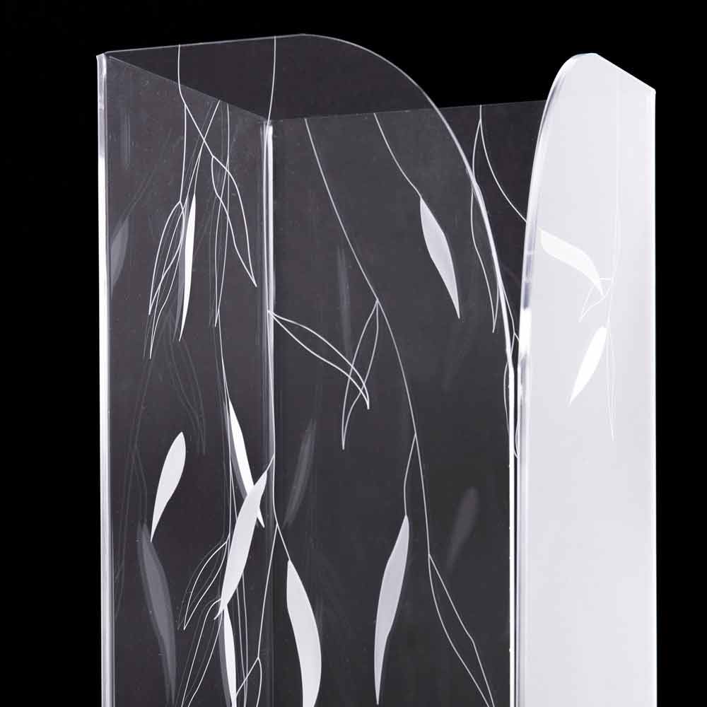 Umbrella stand in transparent plastic with laser engraved decorative leaves, made in Italy design.