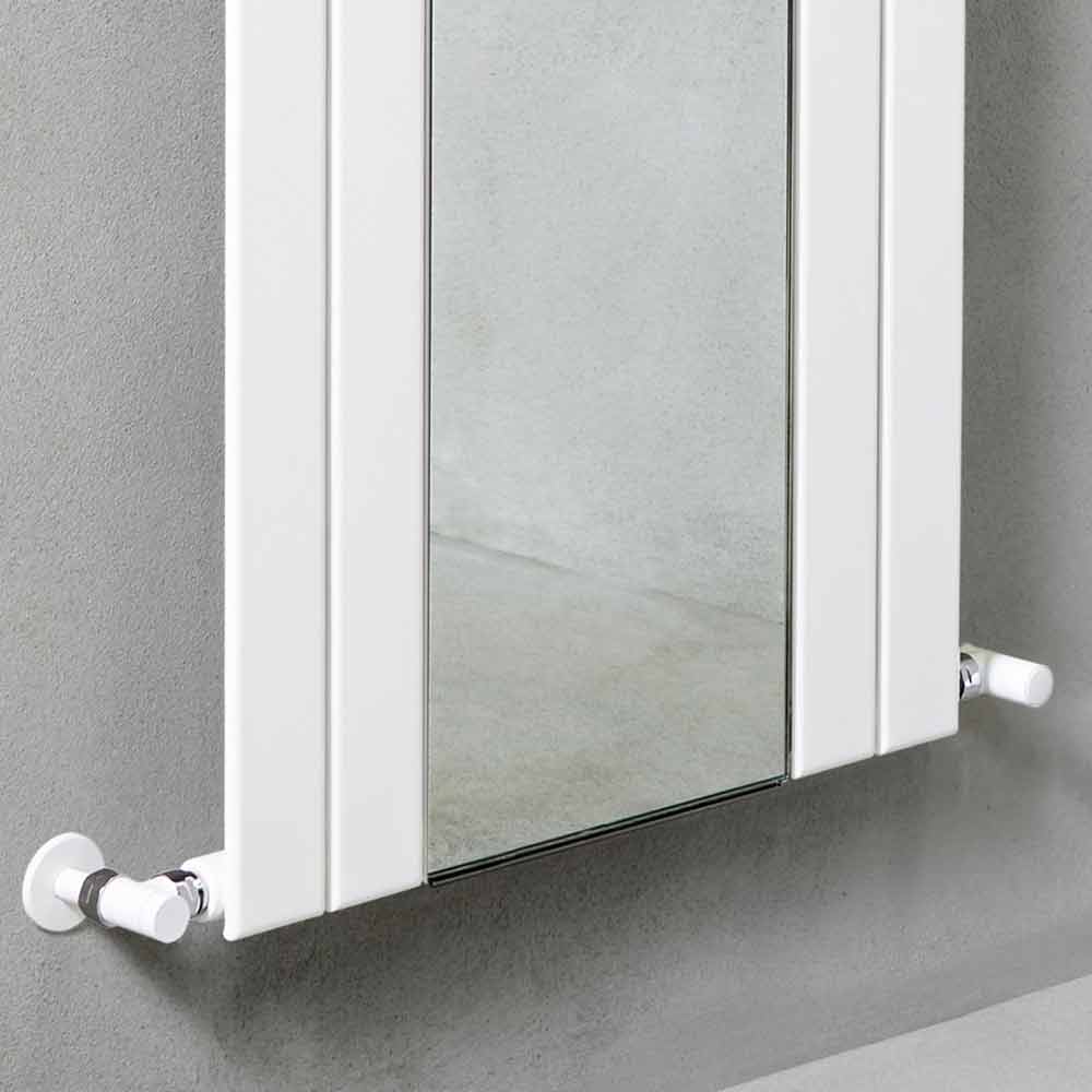 Vertical design hydraulic wall radiator in steel with mirror, made in Italy.