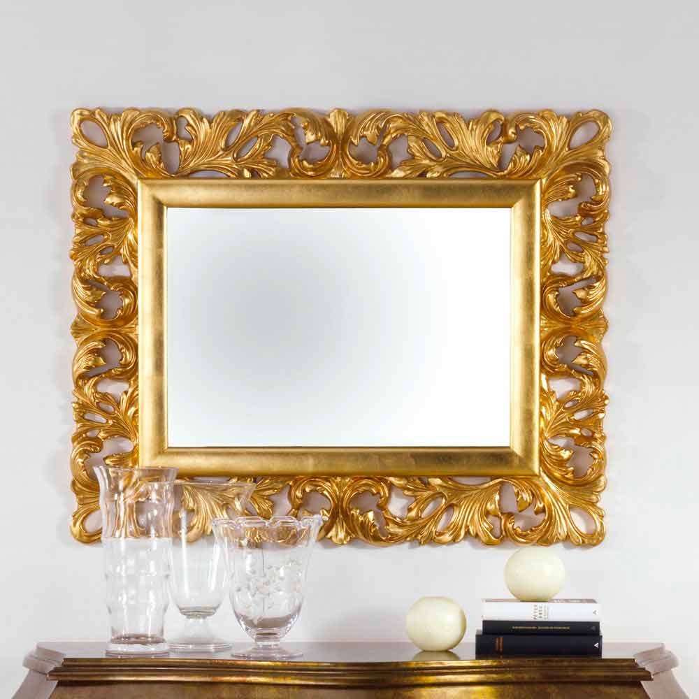 The Gudin mirror is characterized by a craftsmanship carried out using quality materials and using the experience of skilled Italian artisans. The frame is made of wood decorated with carvings. Gold leaf finish. Crystal mirror, 4mm thick. Made in Italy. To hang both horizontally and vertically.