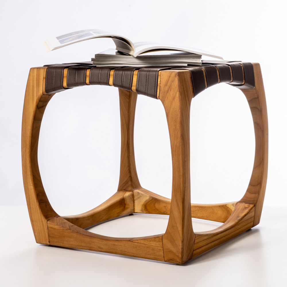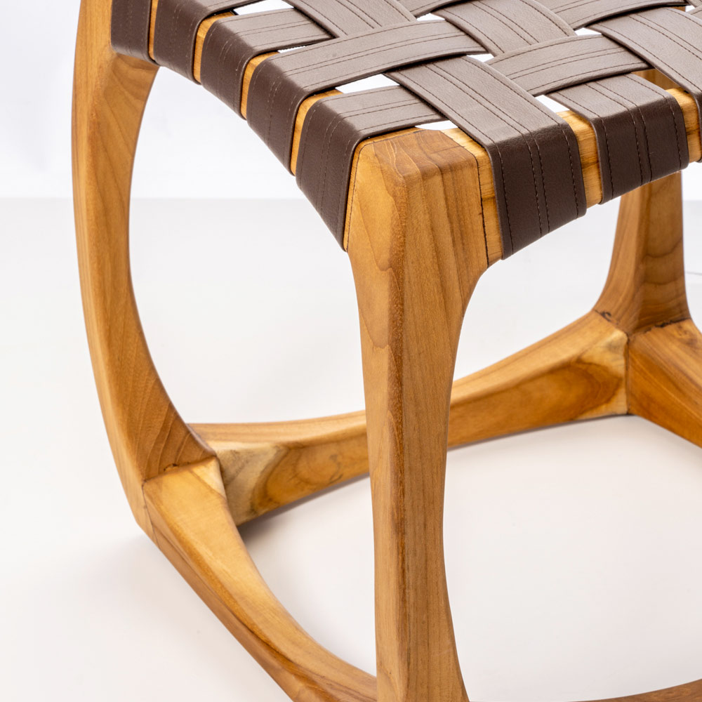 This bathroom stool is a true masterpiece of design and functionality. Its curved solid teak structure demonstrates skilled craftsmanship and offers unparalleled stability, while the leather weaving of the seat not only adds a touch of elegance, but also ensures a comfortable seat. With generous dimensions, this stool not only serves as a seat but also as a support surface for personal items such as beauty cases or bathroom accessories. It is a versatile piece that fits perfectly into any bathroom, combining practicality and impeccable style .