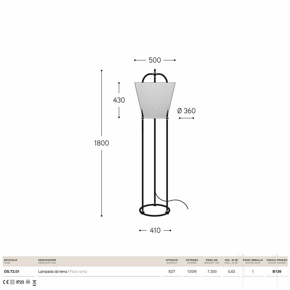 Designer floor lamp Tenarunga by Aldo Bernardi, handcrafted in Italy
