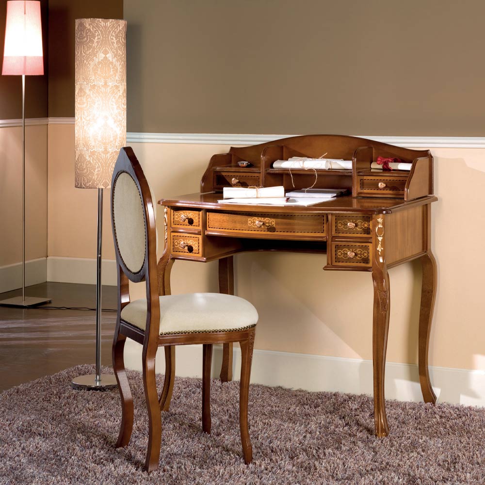 Desk 7 Drawers Walnut Wood with Inlays Made in Italy - Katerine
