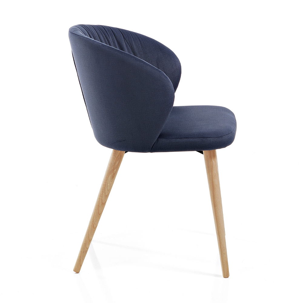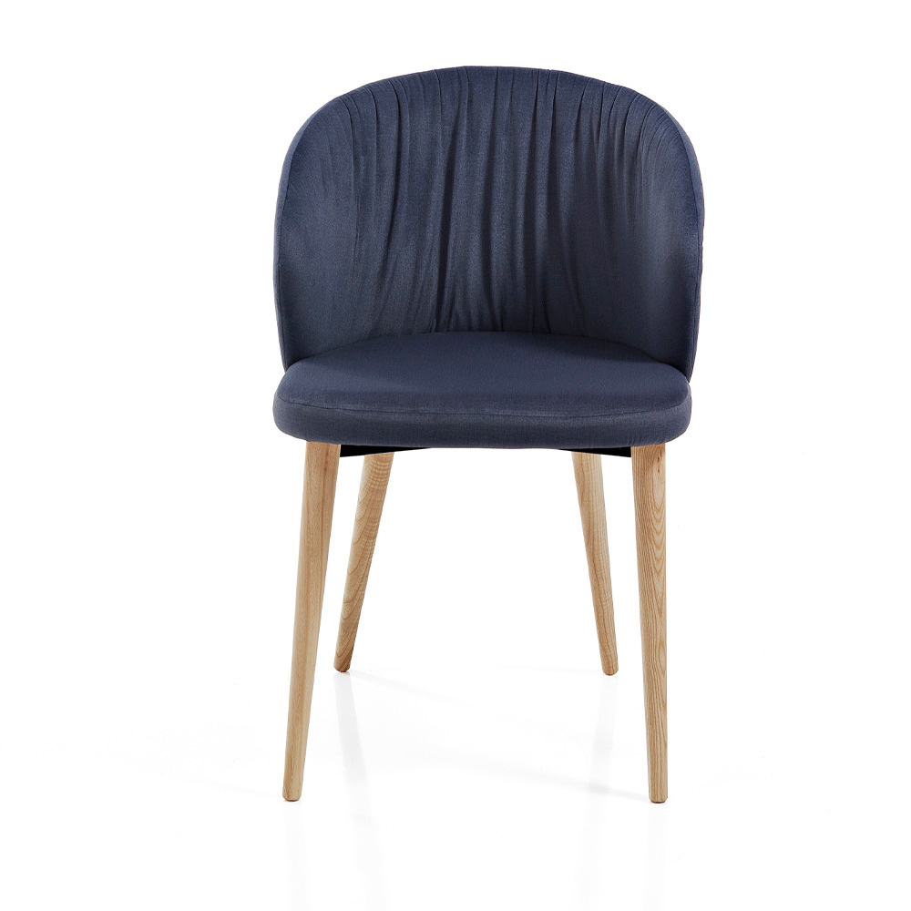 Tub chair covered in colored fabric and conical ash legs of modern design made in Italy.