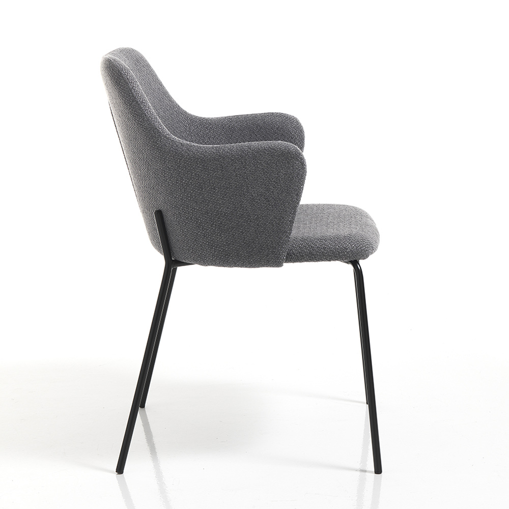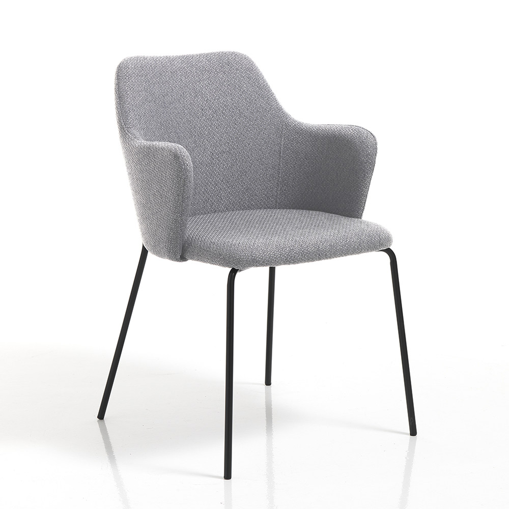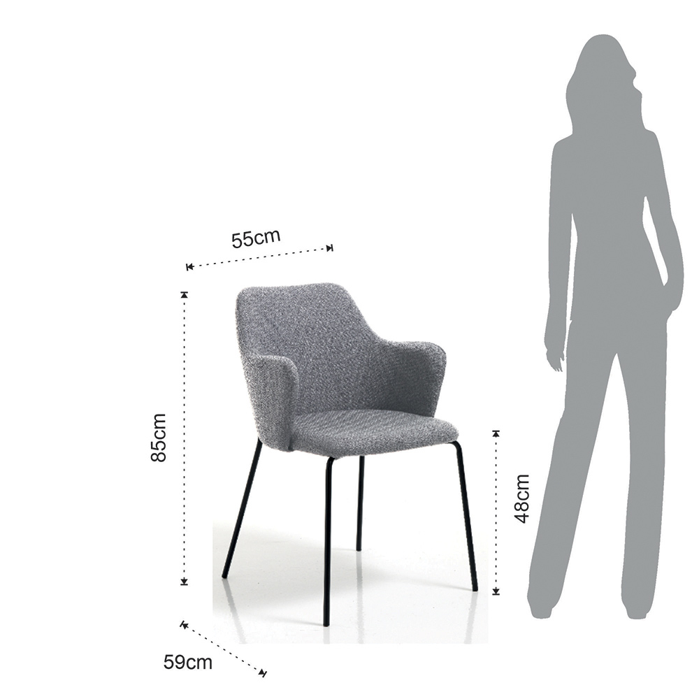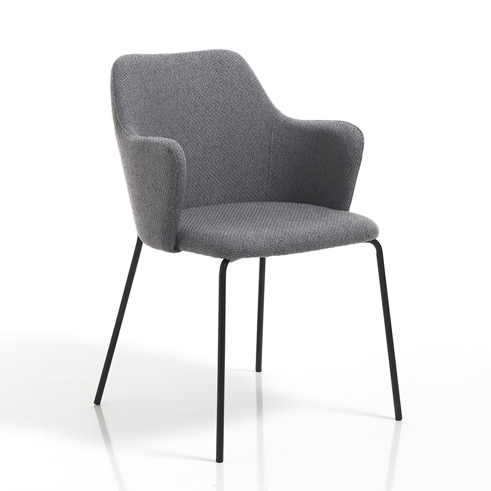 Dining room chair in fabric and black painted metal, 2 pieces.