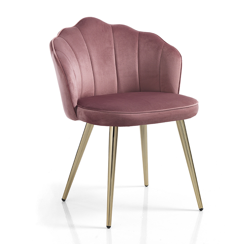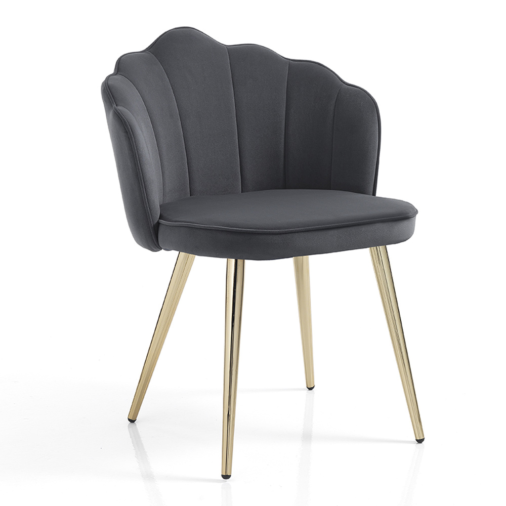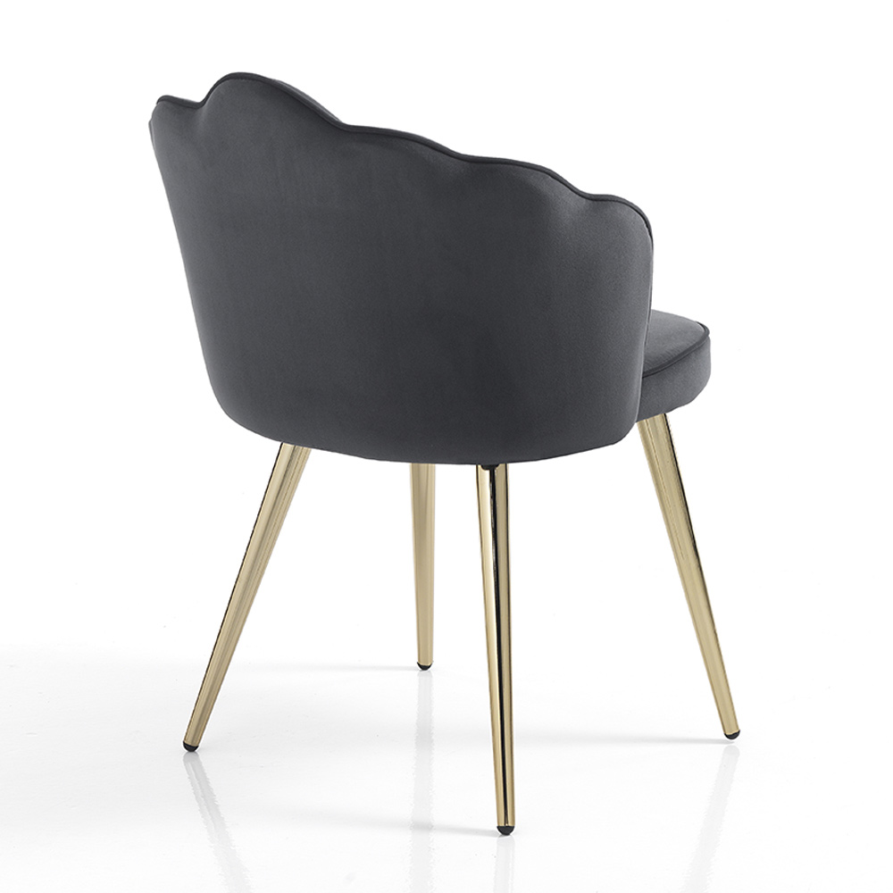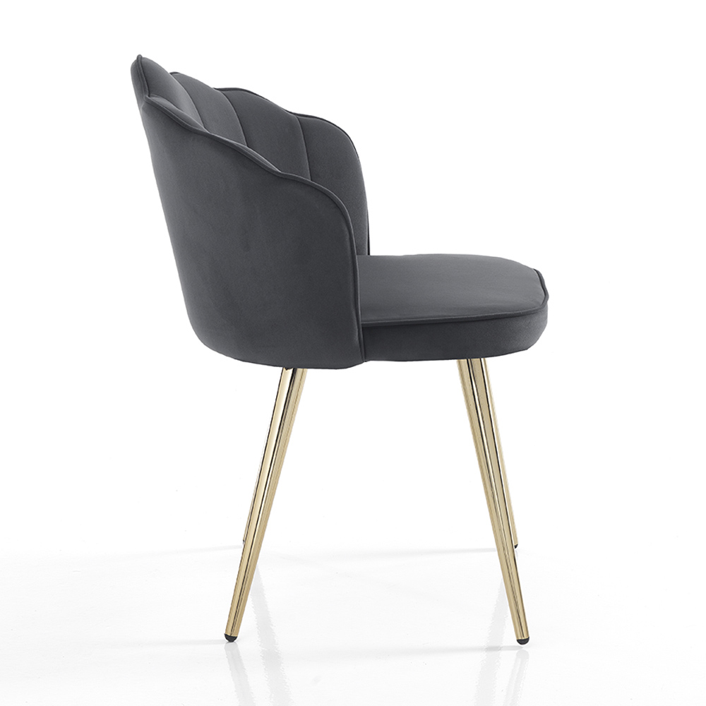 Dining room chair in velvet effect fabric and shiny gold metal, 4 pieces.