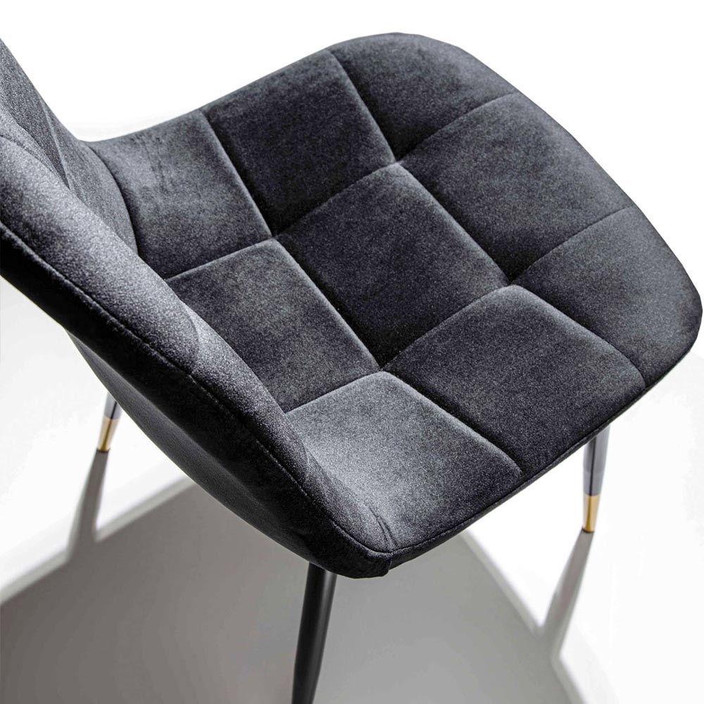 versatile look that can create a captivating aesthetic when placed next to the dining table and all the surrounding furnishings. This chair proves to have a refined soul thanks to the use of velvet, a precious material with a retro style which, when combined with the modernity of the black metal and the painted details that characterize the 4 legs, creates an avant-garde design, capable of adapting to both contemporary-style environments and more classic furnishings within which to create an innovative contrast of styles and personalities.