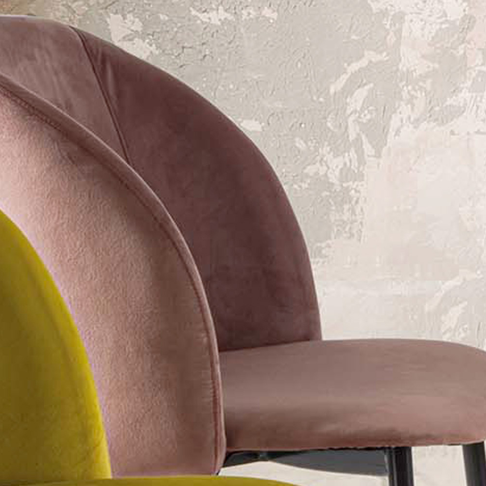 Chair for dining room or kitchen covered in stain-resistant velvet with black painted metal legs. Color, liveliness and a strong personality distinguish this refined chair made with a curved backrest designed and thought to give unparalleled comfort as well as a comfortable and particularly welcoming seat . Thanks to the possibility of choosing between the version with quilted backrest and the smooth one, it is able to respond to every need by offering both an article with an attractive and modern aesthetic and a more sober and discreet variant, allowing it to also prove extremely versatile .