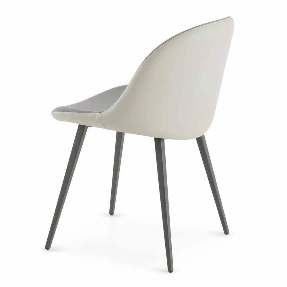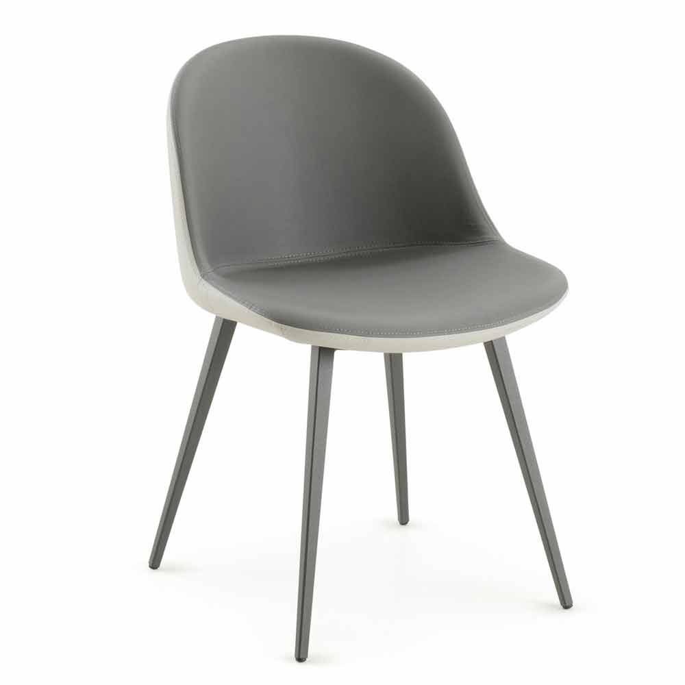 Elegant chair for dining room or kitchen made in Italy with shell covered in silver and anthracite eco-leather and structure in graphite painted metal.